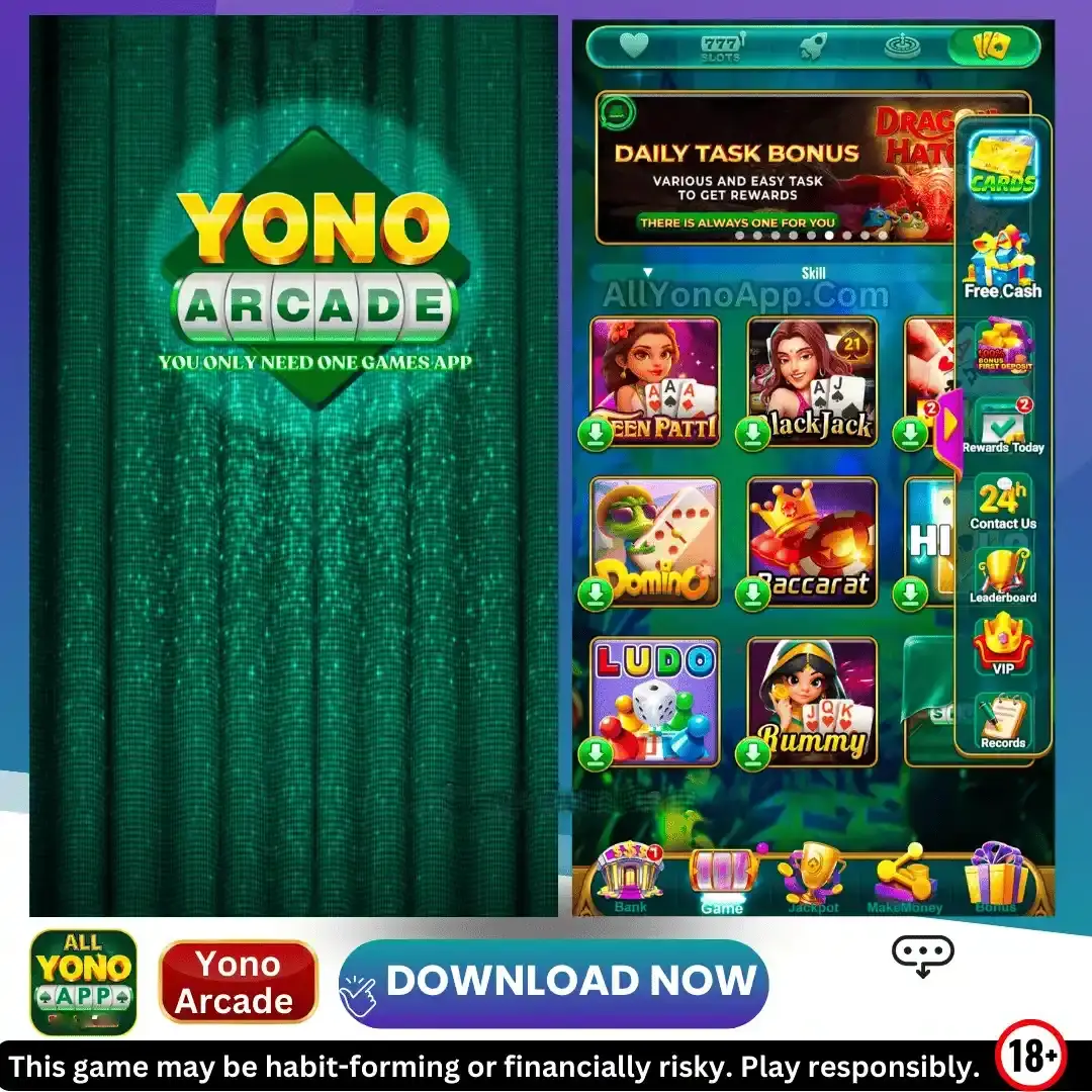 Download the official Yono Arcade app for a safe and seamless experience. Play securely, win real cash, and withdraw your winnings instantly to your bank account. With nonstop fun, exclusive bonuses, and growing rewards, Yono Arcade makes every game more rewarding.